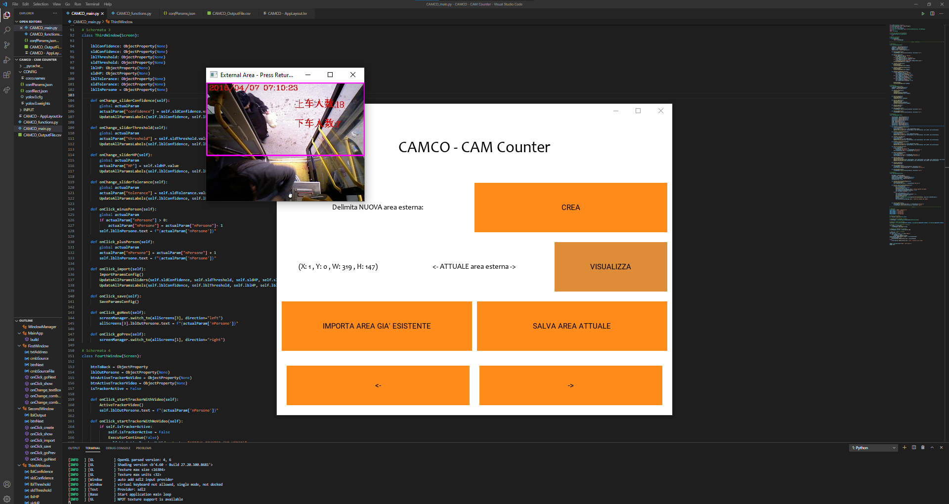 L'obiettivo di "CAMCO - CAM Counter" è quello di sviluppare un software, che grazie all'intelligenza artificiale e sistemi di acqusizione video (anche già presenti), riesce a contare il numero di persone presenti in un determinato luogo.
